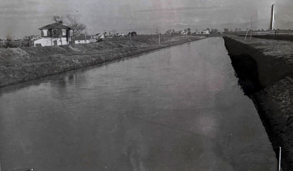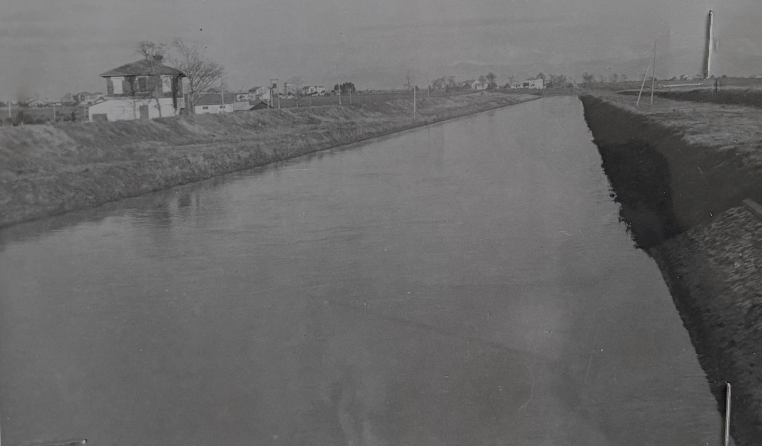 Figure 1. The ill-famed fever-infested Pontine Marshes which defied reclamation for more than 2,000 years and which covered more than 181,000 acres have been reclaimed as fertile and productive farms with five small cities to serve them. Before reclamation, it was so impossible to survey these marshes that three men went together on horseback so as to rescue each other when floundering. Some of the lands were 15 feet below sea level and dunes along the coast prevented drainage of higher lands.Figure 2. The large well-built Mussolini canal carries the rain waters which rush off the denuded mountains direct to the ocean, across the Pontine area, some of which is below sea level. December 1938. W.C.L.Figure 3. The local rain waters are collected at fourteen pumping stations which raise the water to a sufficient level for it to flow out to the sea by its own power. The farm houses are all built of reinforced concrete, built to last a thousand years. December 1938. W.C.L.Figure 4. Littoria under construction. From a land of desolation and disease, Pontine marshes were transformed within a period of two and a half years to a vast fertile farming area with more than 4,000 reinforced concrete houses located on farms and five towns to serve them with schools and churches and all public buildings. Littoria, the largest town, was completed within six months from the time the cornerstone was laid. All towns laid out with distinctive types of architecture.