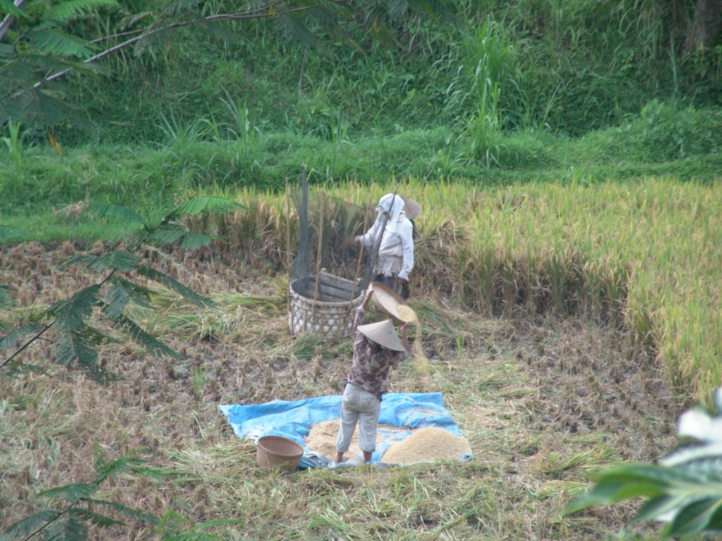 I saw rice fields everywhere I went. It seemed that any open field had rice planted on it. I watched Balinese men and women cut the rice stalks with a sickle and threshed the grain by hitting it against a screen into a container. Everything in the rice field seemed done by hand in the open sun. The people growing the rice can afford little more to eat than the rice they grow. And the rice they grow has no Retinol.