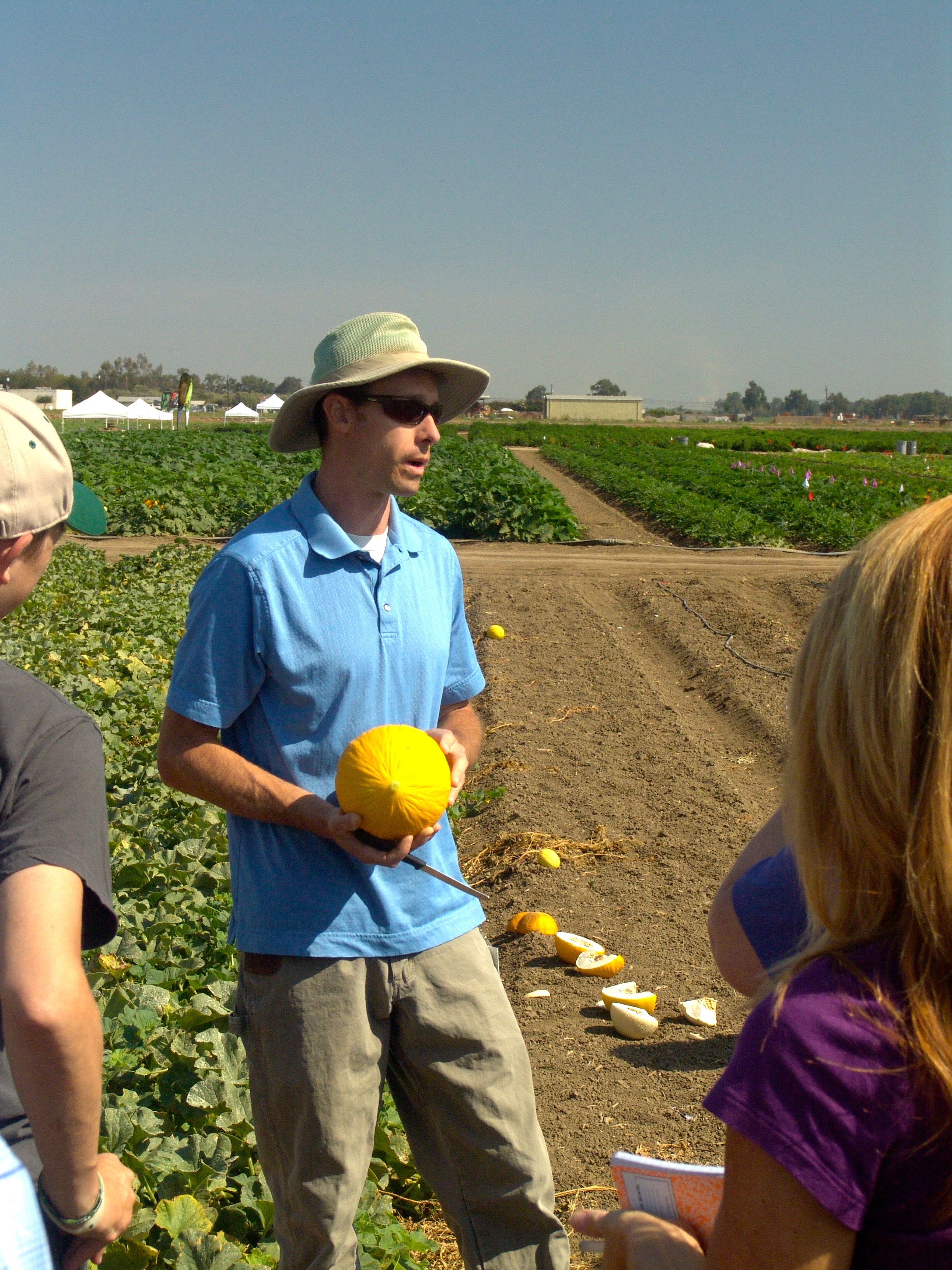 Many critics think Monsanto wants to poison consumers, which is a very odd business model when you stop to think about it. The poisoning comes from the use of transgenic biotechnology–GMOs (according to critics). Yet of all the fruit and vegetables I and my fellow bloggers saw only one squash which had been created transgenically, twenty years ago to resist a virus. Resistance to GMOs, in my opinion, has forced Monsanto and others to revert to the far more cumbersome method of crossing and back-crossing plants rather than selecting and placing beneficial genes. Under the cross/back-cross system the fastest a product can get to market is six years, but there is no EPA or FDA hoop to jump through. Transgenic plants could be developed much, much faster but the regulatory hoops can add decades to the rollout to market.